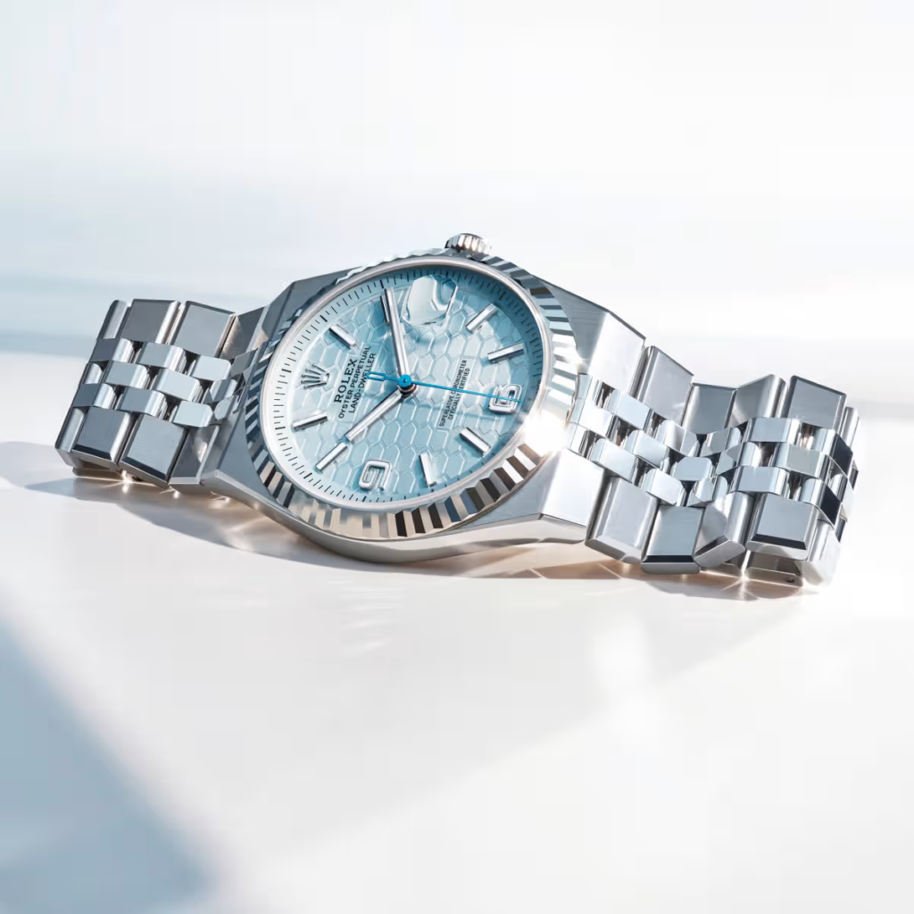 Securing the Land-Dweller to the wrist is the robust Oyster bracelet. Featuring the Rolex-designed and patented Oysterlock folding safety clasp, it prevents accidental opening. It is also equipped with the Easylink comfort extension link, allowing the wearer to increase the bracelet length by approximately 5mm.